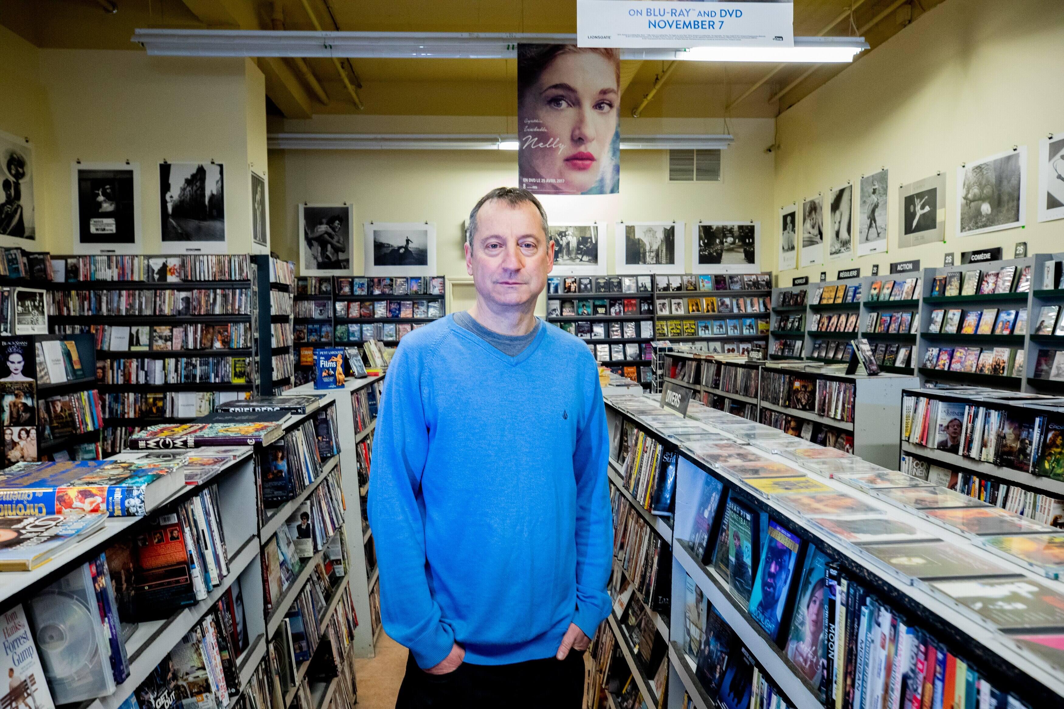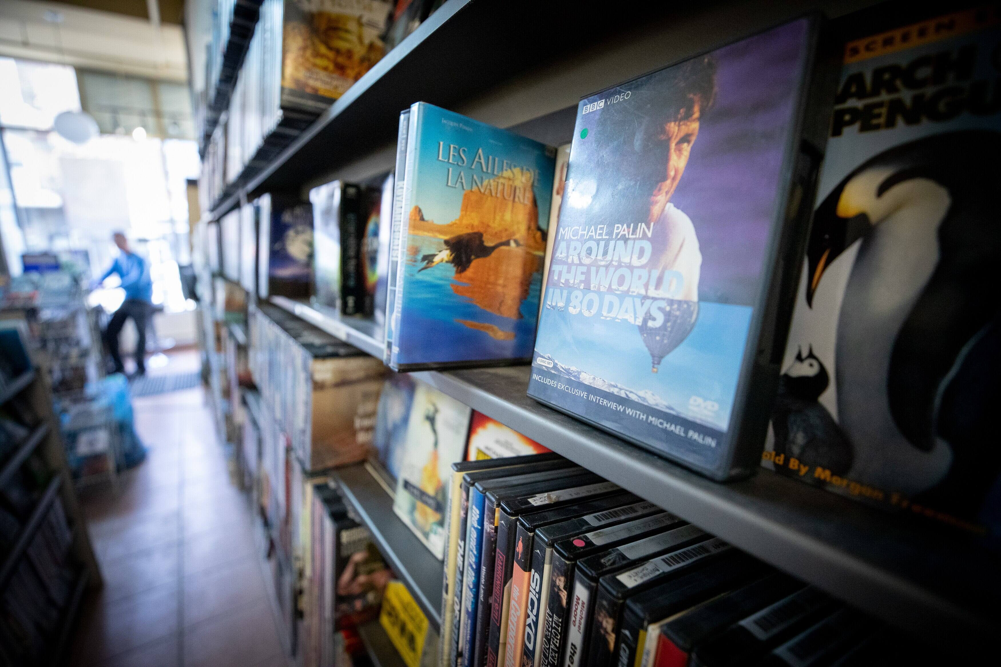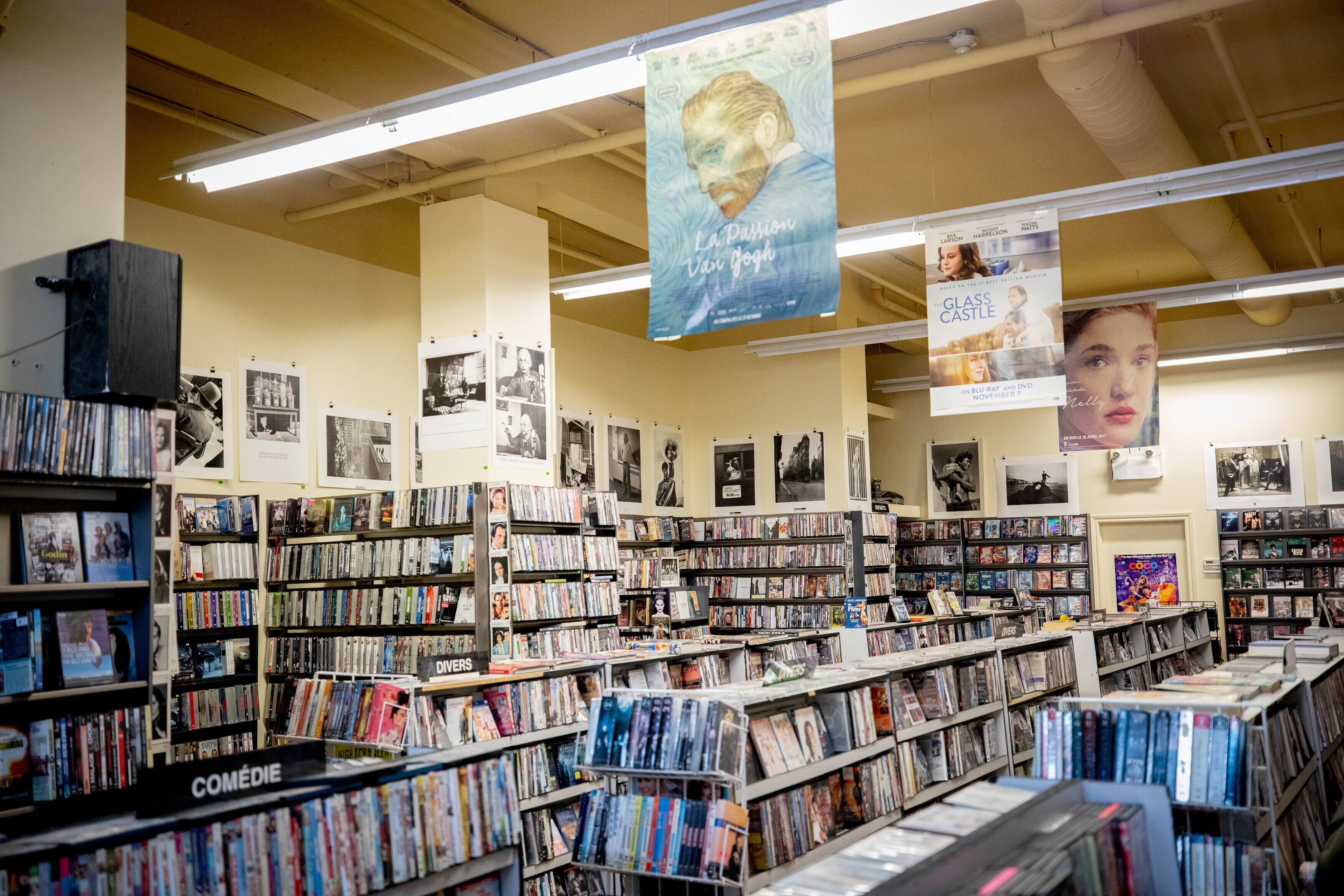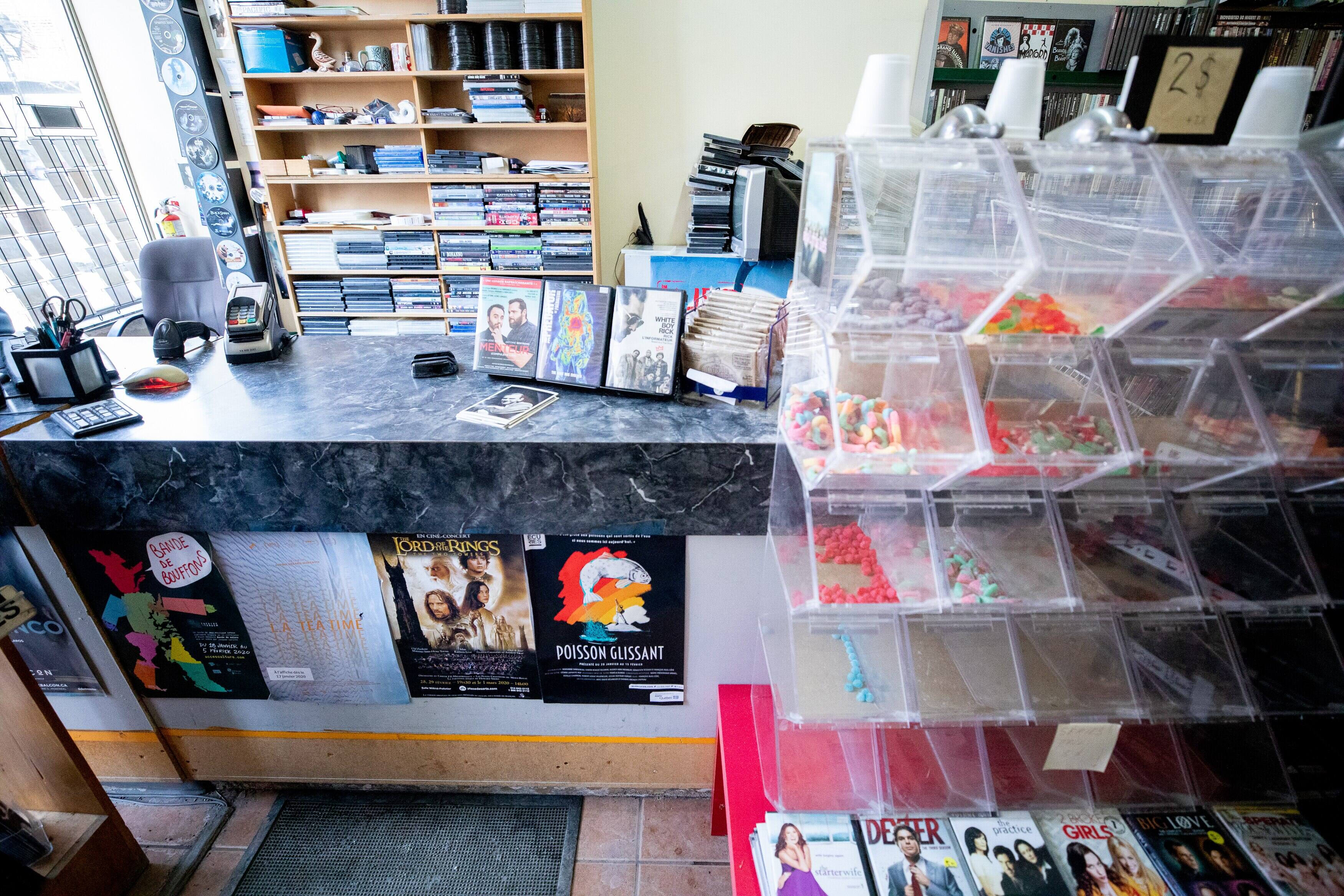 Au club vidéo Cinoche, à Montréal, des touristes américains se prennent en photo dans le local typique d’une époque presque totalement révolue. Des parents montrent à leurs enfants cet établissement qui a survécu à la chute d'une industrie.