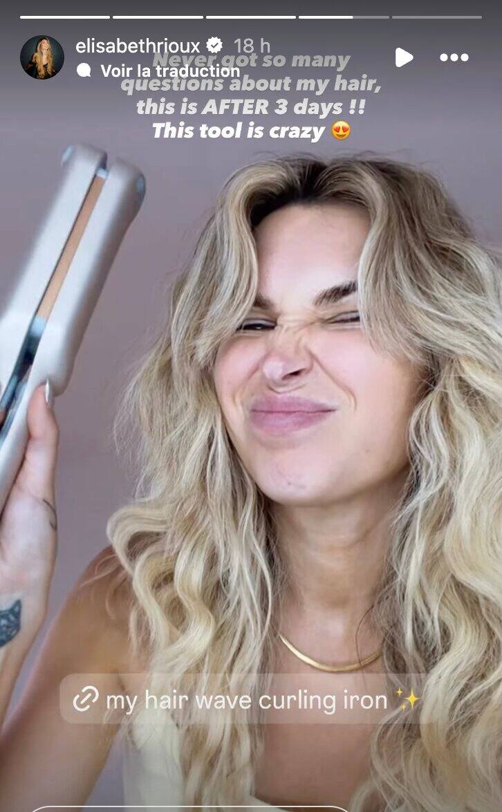 Comme elle a reçu une foule de messages sur ses cheveux, Elisabeth a révélé son secret : le fer à vaguer Tymo Rovy, disponible sur Amazon.