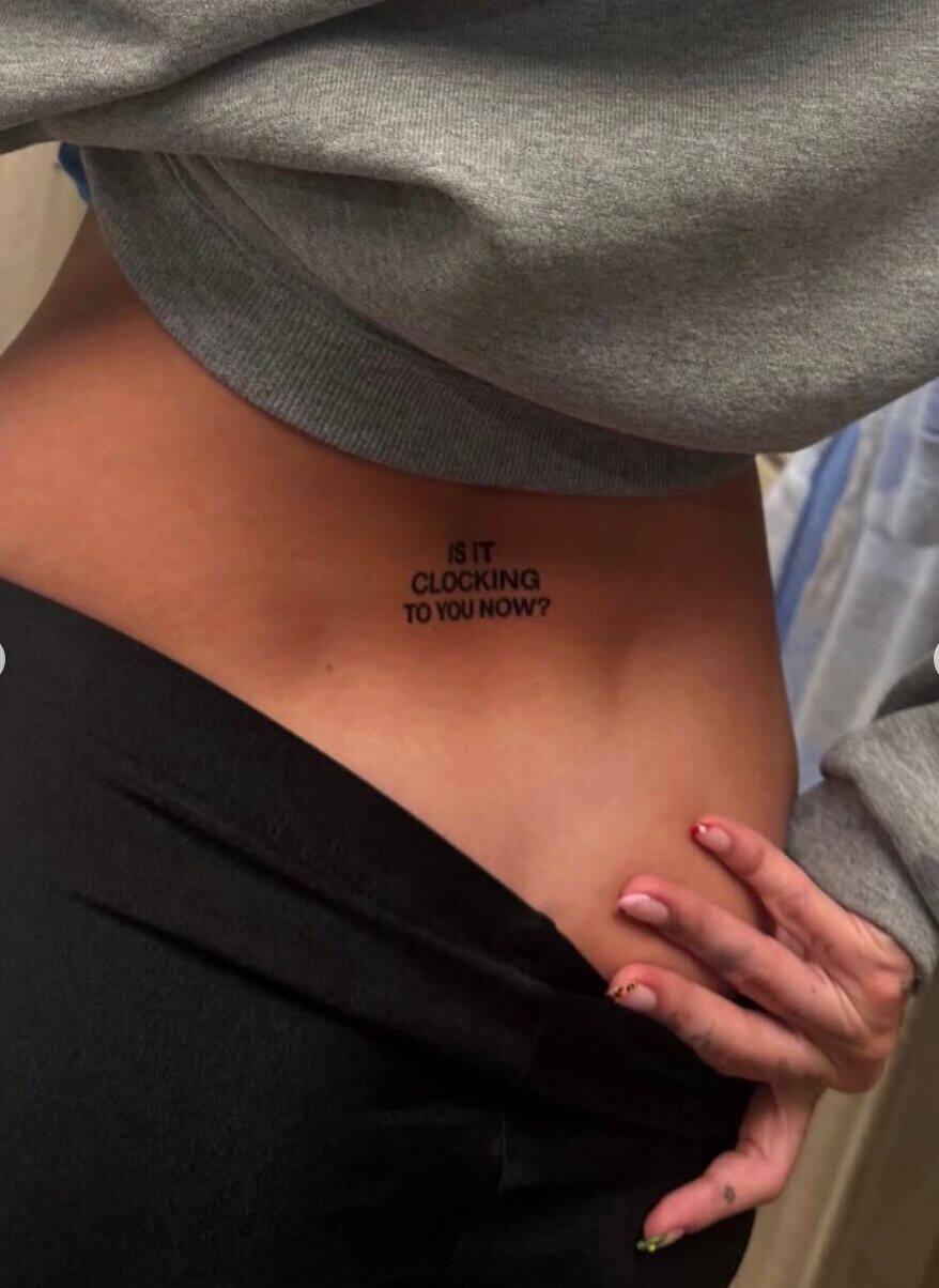 Après des déclarations de fierté et d’amour sur les réseaux sociaux, Hailey a voulu aller plus loin pour son époux... Elle a osé les tatouages ! Elle en a déjà quelques-uns, mais ceux-ci sont franchement nostalgiques, avec un « I love JB », avec un coeur mauve à la place du love sur la hanche, et un second avec une phrase iconique de Justin à des paparazzis l’an dernier : « Is it clocking to you now ? », dans le bas du dos.